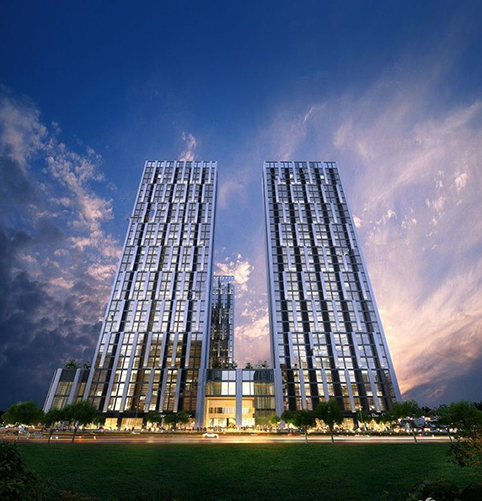 工程规模:1号楼地上28层,幕墙装饰面积约3万平方; 2号楼地上28层,幕墙装饰面积约3万平方; 3号楼地上28层,幕墙装饰面积约3万平方; 4号楼地上25层,幕墙装饰面积约2. 5万平方。