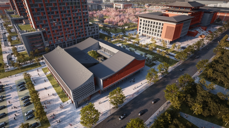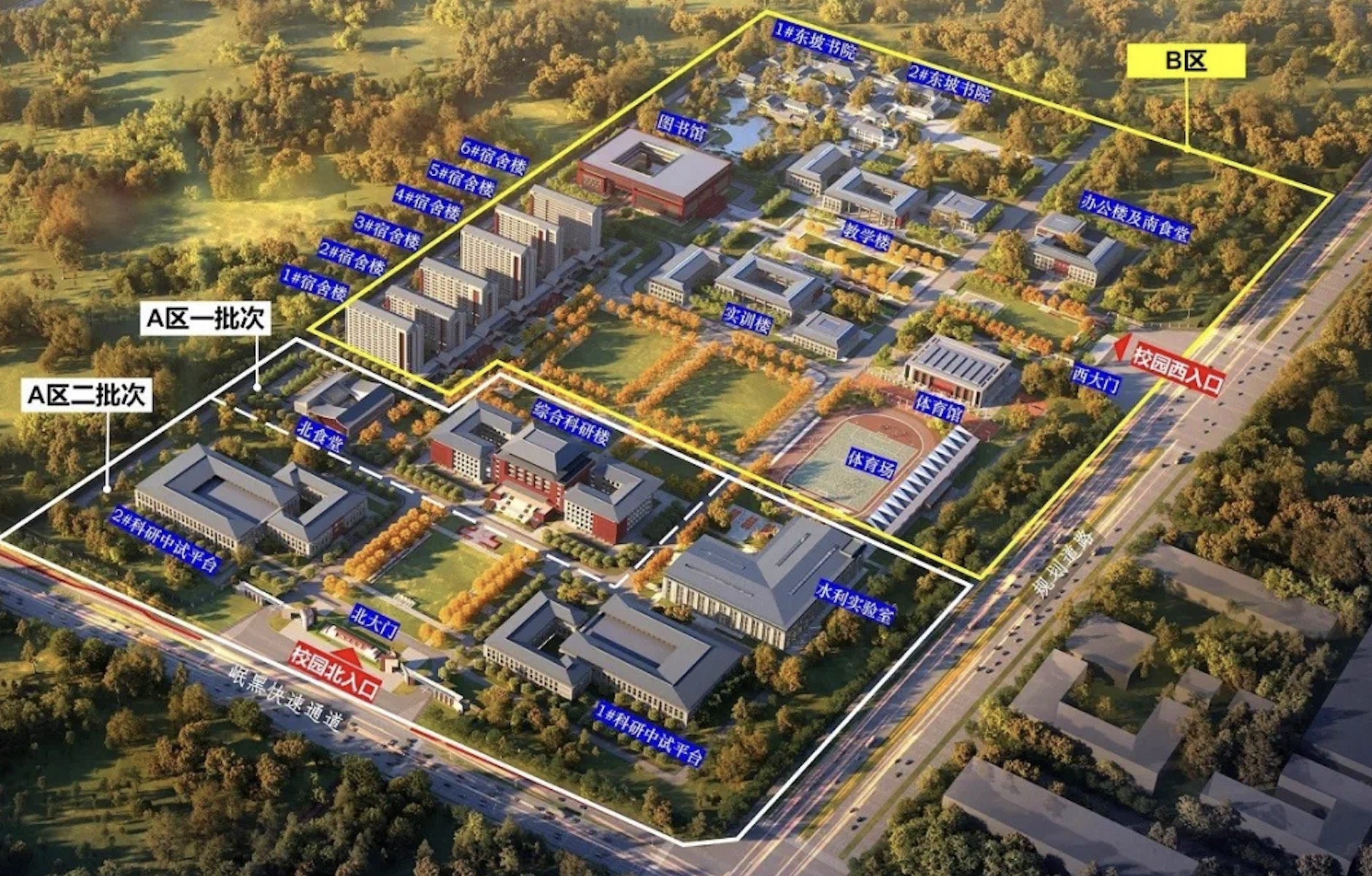 项目总建筑面积约34.11万平方米,包含综合科研楼、科研中试平台、水利实验室、图书馆、体育馆、东坡书院等21栋单体建筑。