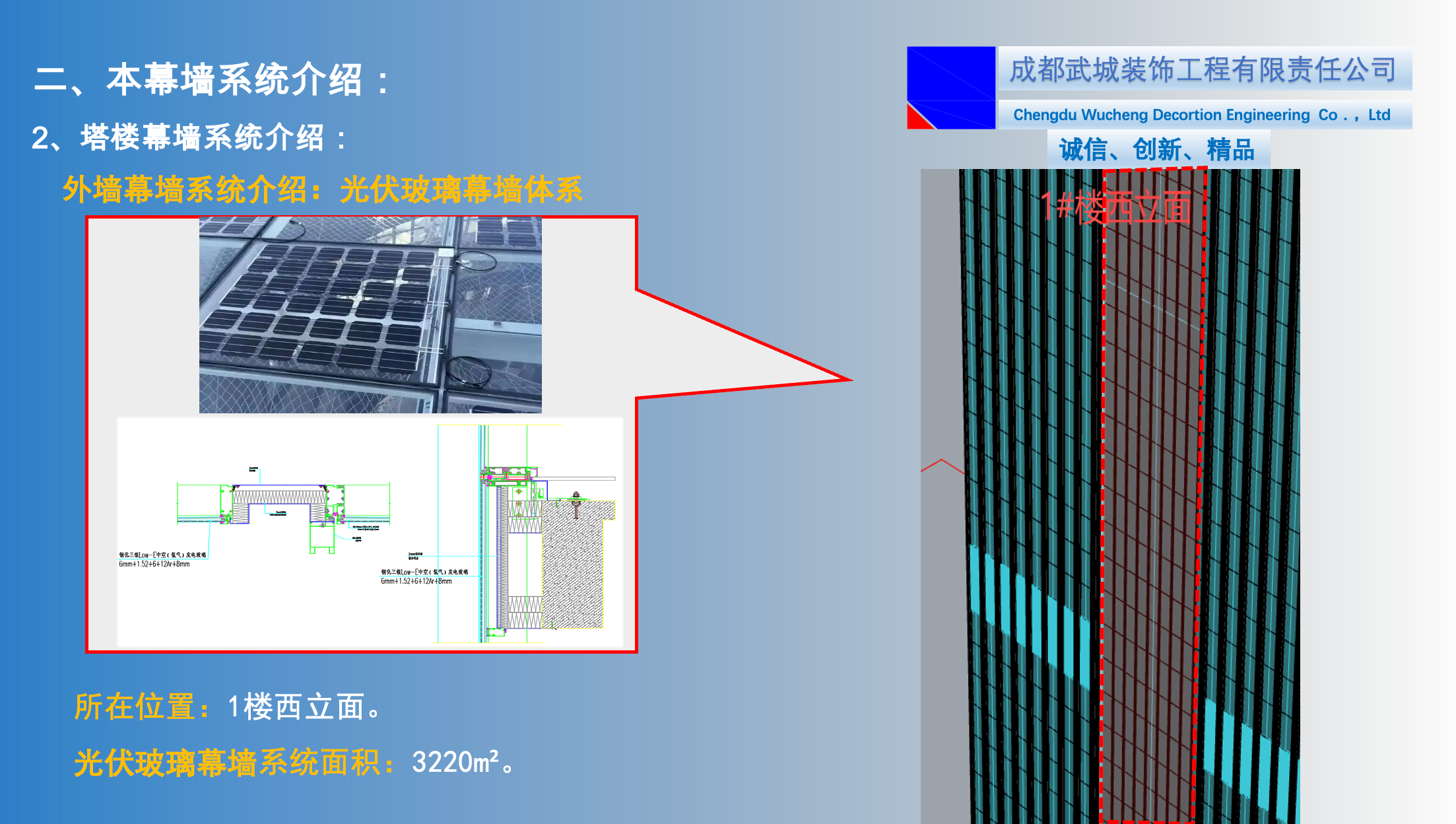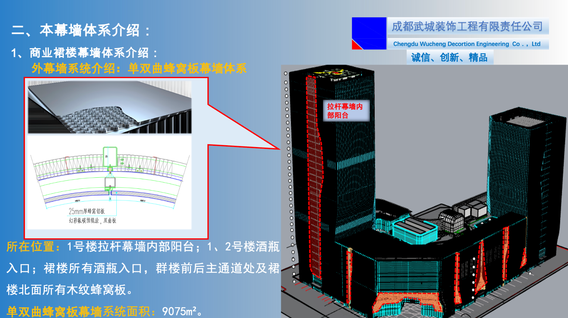 该项目各类幕墙面积约14万平方,由光伏幕墙、单元式幕墙、拉杆全玻幕墙、多曲不锈钢幕墙、蜂窝板及铝板幕墙及各类构件式幕墙,是目前成都市区最标杆的幕墙工程,中标工程造价约1.77亿元。