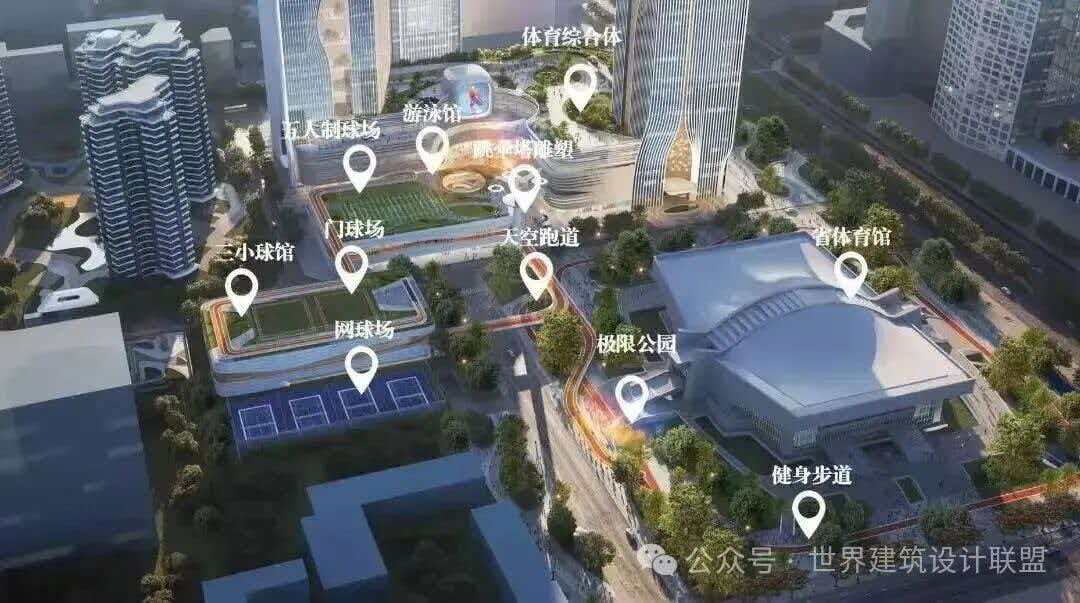 项目总投资45亿元,总占地面积44.18亩,总建筑面积约28万平方米,是成都首个TOD模式运动公园综合体。